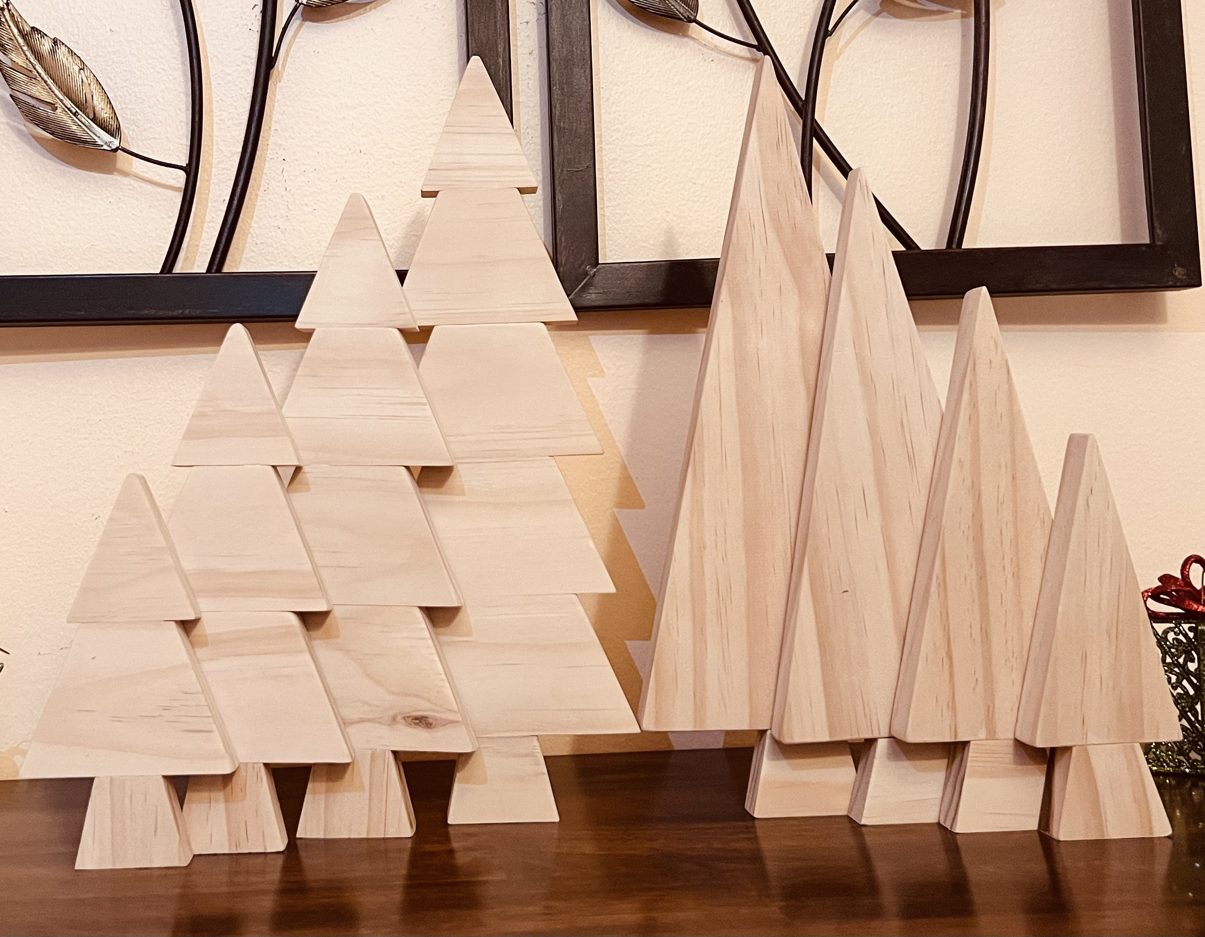 Create a captivating festive Forest haven with our set of 8 unfinished Christmas Trees / New Year Trees. The Craft Supplies are Christmas Craft is Handmade in the USA. This charming, fine-sanded pine trees offer Rustic Holiday Charm and Home Decor. Let your creativity dazzle as you paint, glitter, or decoupage them, personalize it for Christmas and New Year decorations. These free-standing trees are ideal for Kids' Crafting projects, providing endless imaginative possibilities. Elevate your holiday decor with crafty Christmas ideas and embrace the enchantment of handmade USA craftsmanship. Each piece doubles as a Christmas Ornament, making them perfect for Christmas Tree decorations, Holiday Gifts, and to add a festive touch to your Home Accents and Farmhouse Decor. This set of 8 offers a versatile way to infuse your space with the warmth of the holiday season.
